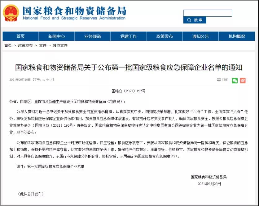 有效提升應(yīng)對(duì)突發(fā)事件能力,確保國家糧食安全,按照《糧食應(yīng)急保障企業(yè)管理辦法》(國糧倉規(guī)〔2021〕193號(hào))有關(guān)規(guī)定,